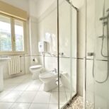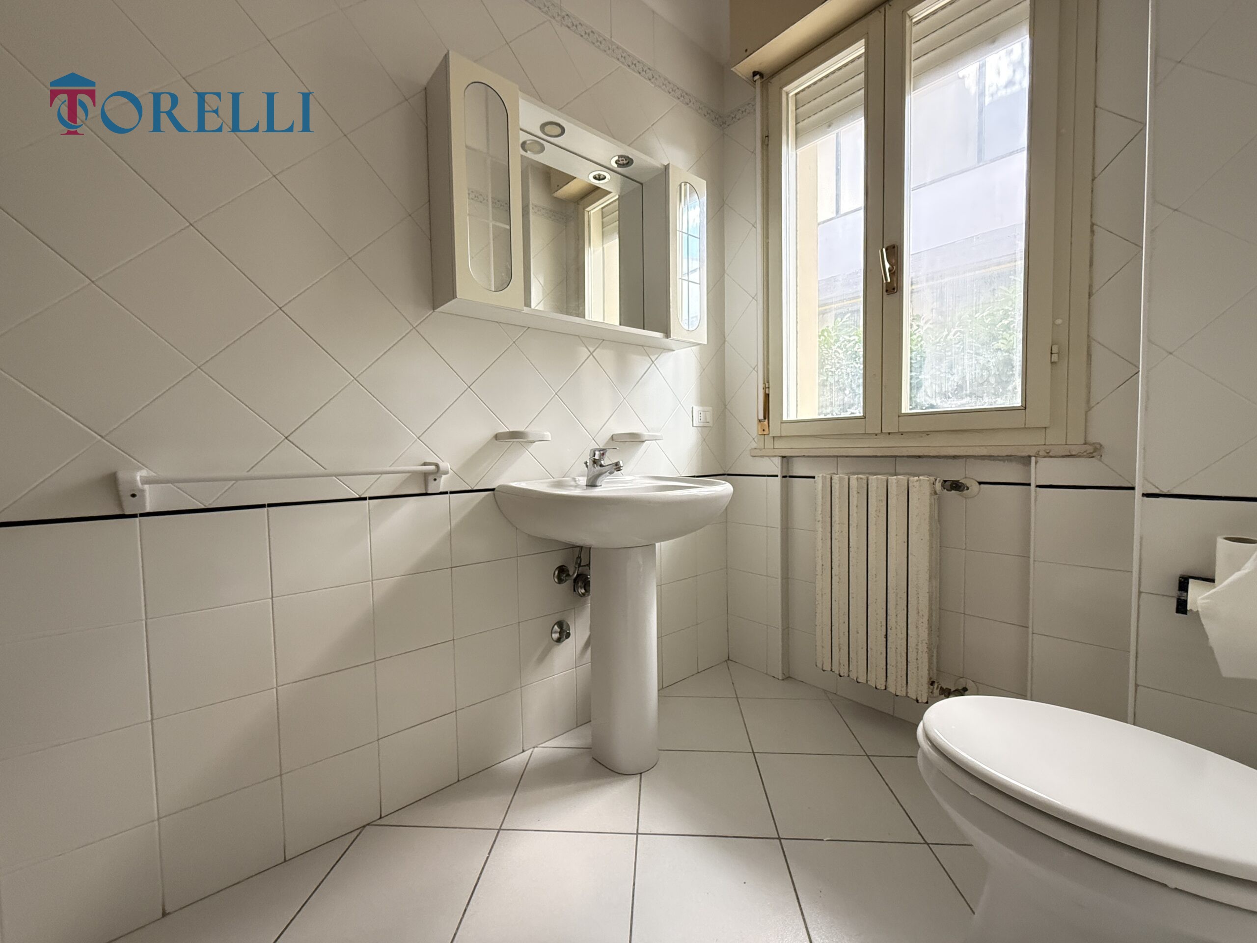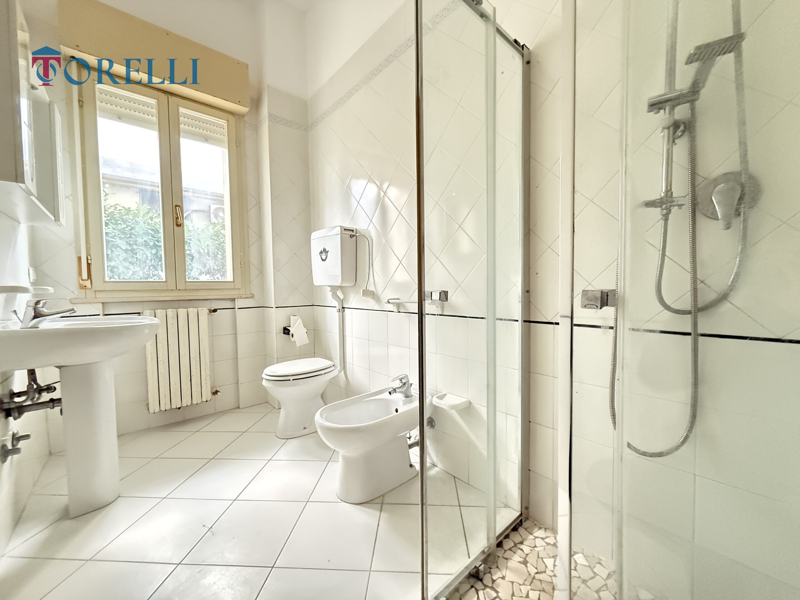 Bagno finestrato con box doccia, curato e funzionale.